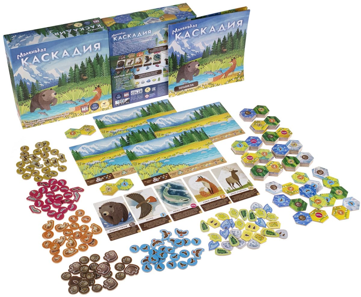 «Маленькая Каскадия» — это адаптированная для младшего возраста классическая «Каскадия», она имеет более дружелюбный темп, понятные правила, короткие партии, а вместо сложных условий — наглядные задания. При этом игра остаётся стратегической: чтобы победить, нужно не просто собирать жетоны, а продумывать, как они будут сочетаться и какие рисунки животных и местности принесут больше очков.