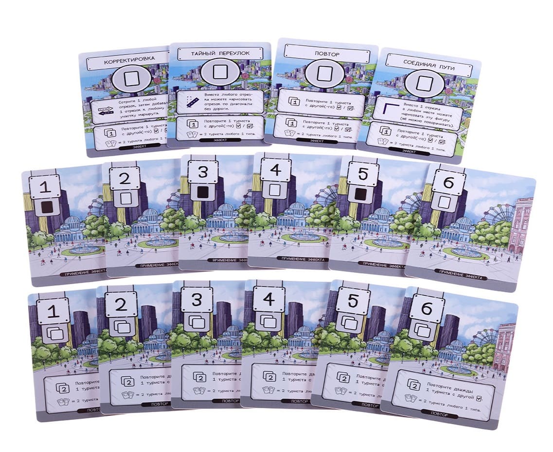 «Маршрут построен» - настольная игра, в которой участники строят туристические маршруты по самым примечательным местам Лондона, Нью-Йорка, Гонконга и других удивительных городов мира. Вам предстоит выбирать, каких туристов с карт раунда вы хотите привлечь к своему туру. Затем вы будете отмечать их на своей карте города и прокладывать для них маршрут (желательно оптимальный!), стараясь захватить те места, которые они хотели бы посетить. Игра заставляет постоянно взаимодействовать, а поскольку карты раунда вы и ваши соперники выбираете сами, вы в достаточной степени контролируете ситуацию и можете выстраивать стратегию.