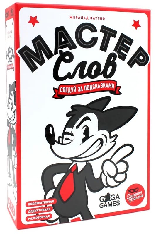 «Мастер слов» - кооперативная настольная игра на словесные ассоциации, в которой команде участников в составе от 2 до 6 человек предстоит отгадать секретное слово, основываясь на его теме, нескольким вариантам догадок и подсказкам ведущего.