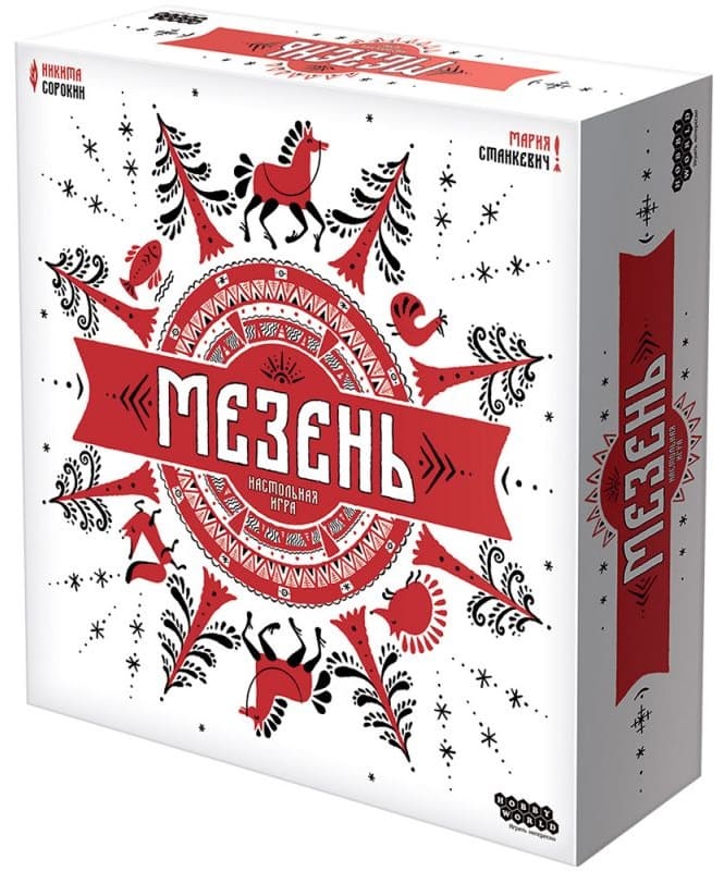 «Мезень» – это карточная настольная игра на планирование и логику, в которой участникам предстоит взять на себя роль ремесленников и создавать живописные орнаменты на заказ. Большое внимание во время разработки игры было уделено стилю. Поле и фишки выполнены в одноименном игре стиле росписи «Мезень». Рассчитана игра на компанию от 1 до 5 человек возрастом старше 8 лет.