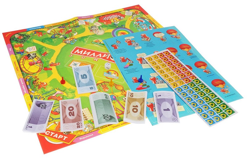 Настольная игра «Миллионер Junior» - это детская версия одноименной игры, которая, в свою очередь, похожа на всем известную «Монополию». В ней юным бизнесменам предстоит побороться за права продавать билеты на аттракционы с Смехопарке. А для этого потребуются умение обоснованно рисковать, расчет, логическое и стратегическое мышление. Игра также дает понимание об основах игрового процесса игры взрослого «Миллионера».