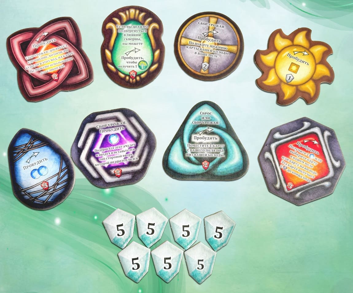 В ходе игры участникам предстоит постоянно улучшать свою колоду карт с помощью ее инновационной механики сотворения карт. Прозрачные слои открывают поистине безграничные возможности для разработки и реализации тактических решений. Разыгрывая карты, игроки пытаются получить мощные улучшения и полезные карты долин. При этом важно быть осторожным: безрассудная трата сил природы несет скверну и лишает хода.