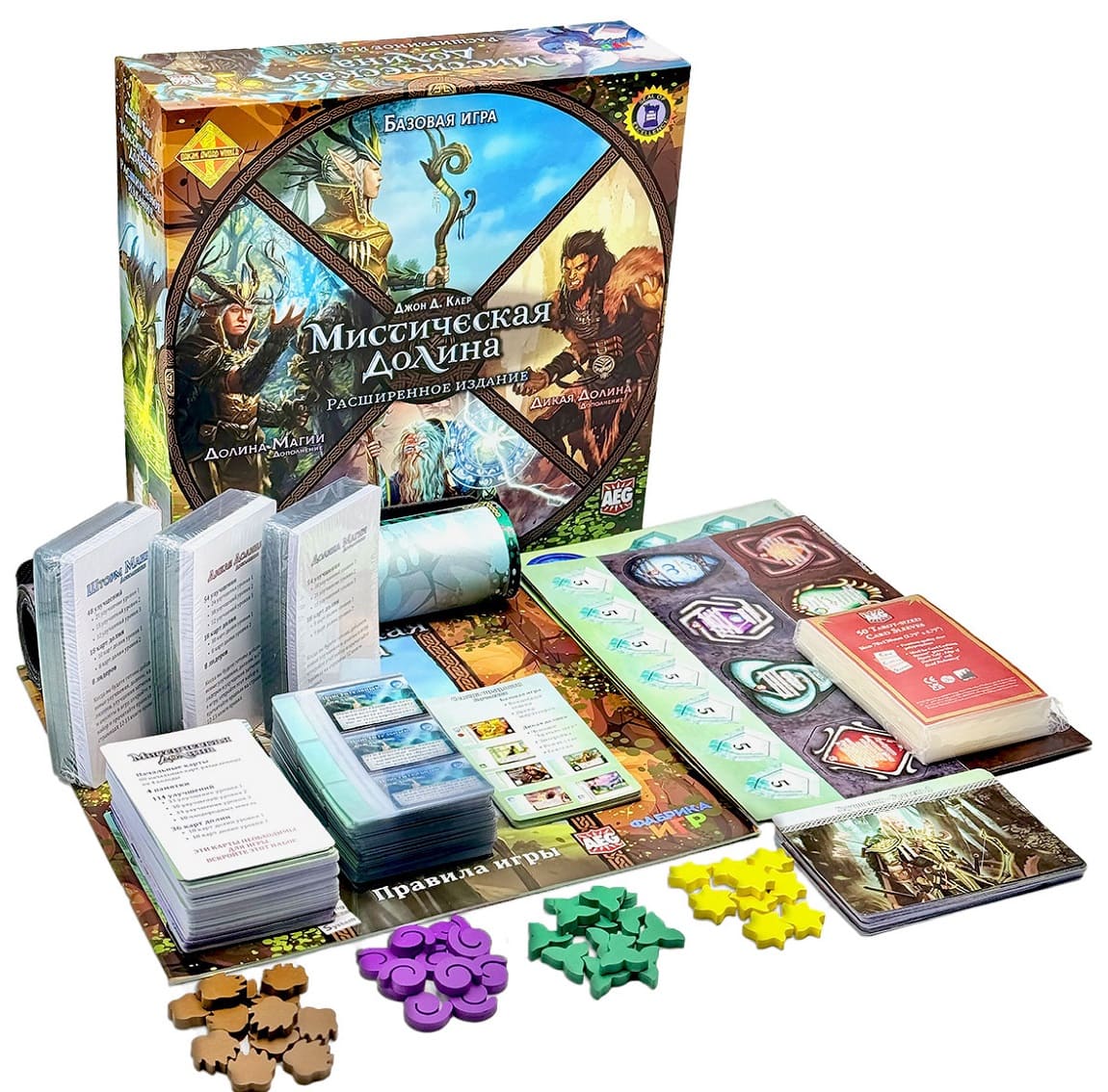 «Мистическая Долина. Расширенное издание» – настольная игра с уникальной механикой под названием «система сотворения карт». Благодаря использованию прозрачного пластика, игроки путем наложения могут получать невообразимые комбинации свойств карт, делая свою колоду уникальной от партии к партии.