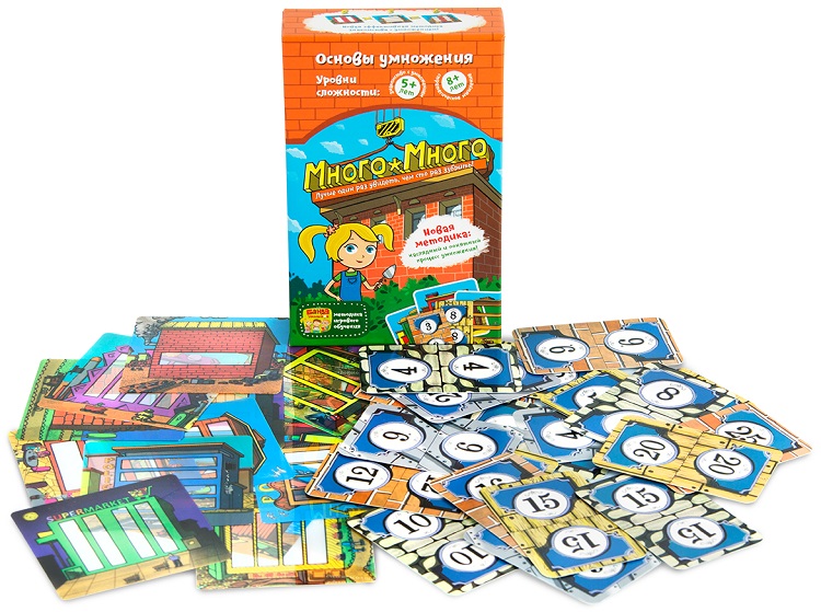 Настольная игра «Много-много» - это игра, разработанная специалистами издательства «Банда умников» для развития навыков устного счета (в данном случае умножения), у детей 5 – 8 лет. В игре применена специальная методика, которая способствует освоению умножения опираясь на предметно-образное мышление, а не на механическое заучивание.