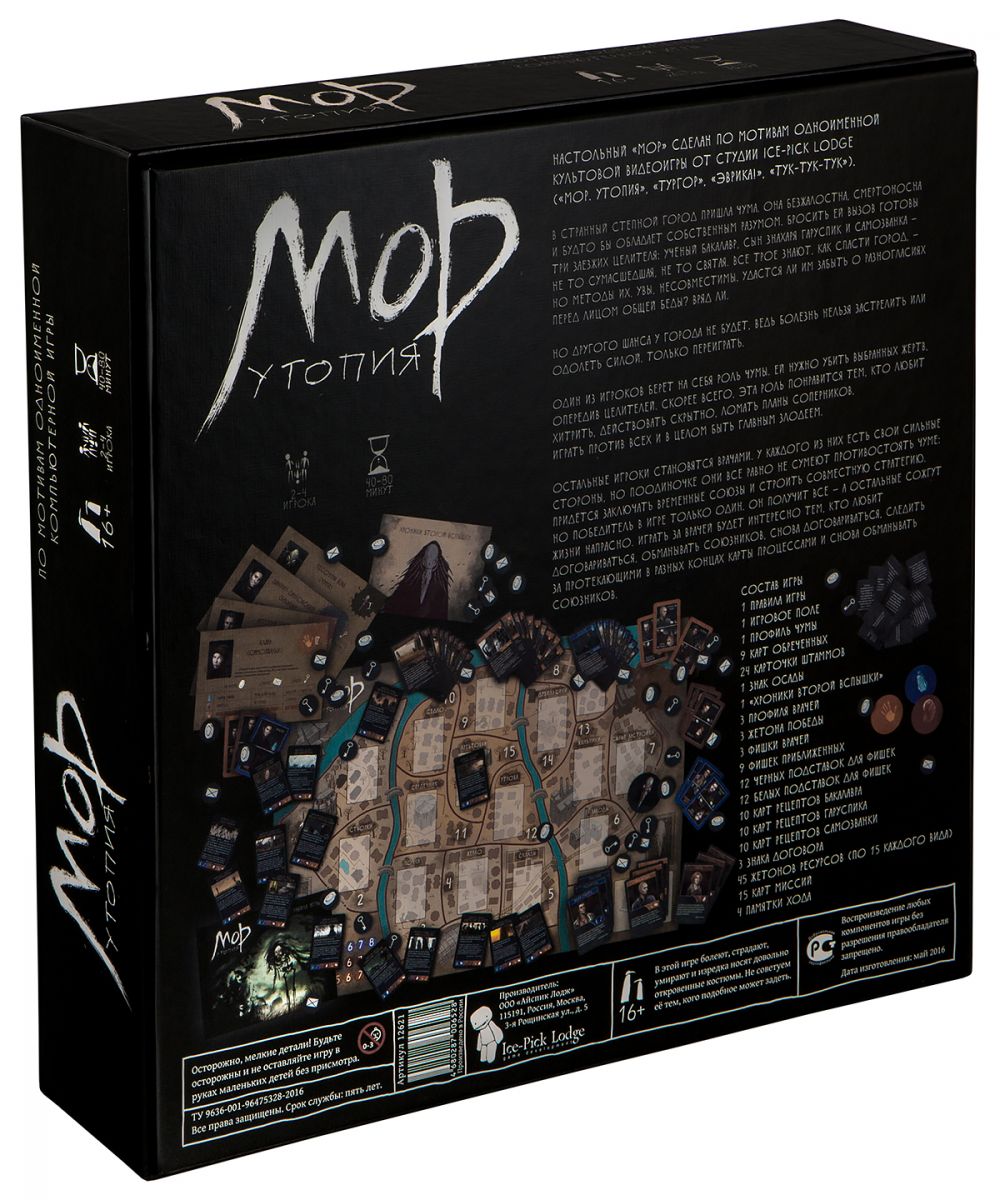 «Мор. Утопия» - это отечественная настольная игра, созданная на основе отечественной же одноименной видеоигре от студии Ice-Pick Lodge. Нам очень приятно, что полностью отечественная разработка вошла в разряд бестселлеров и уже выходит во втором издании.