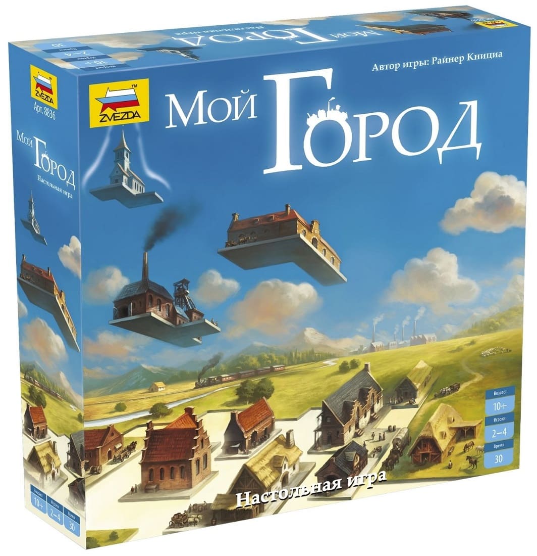 «Мой город» - градостроительная настольная игра с механикой «наследие». С помощью элементов полимино участникам игры предстоит построить поселения на своих планшетах, зарабатывая победные очки на наиболее выгодном расположении различных объектов - угольных шахт и золоторудных рудников, фабрик и железных дорог, церквей и других строений.