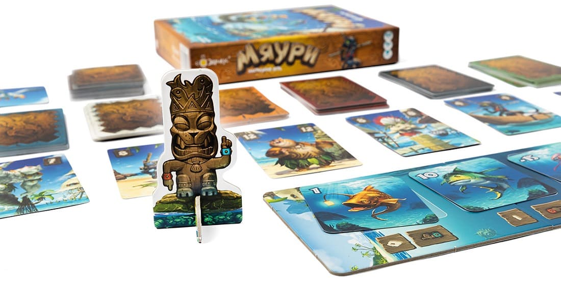 «Мяури» - настольная игра с уникальной механикой скрытых аукционов, в которой игрокам предстоит побороться за право порыбачить на нужной глубине, но не весь улов приносит победные очки, медузы или чайки способны лишить вас всего заработанного.