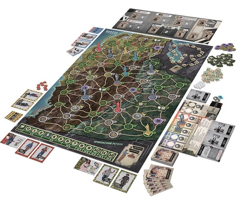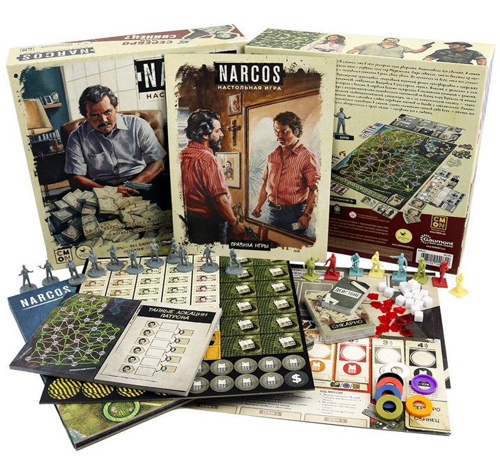 Настольная игра «Нарко» - это полукооперативная детективная настольная игра, в которой один из игроков берёт под своё управление преступную наркоимперию Патрона, а остальные – объединяются в одной команде ради его поимки, выполняя роль сотрудников Управления по борьбе с наркотиками из США и Национальной полиции Колумбии.