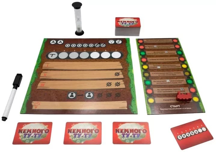 «Немного Ту-Ту» — вечериночная настольная игра на ассоциации от известного российского автора Ивана Лашина. В этой игре участникам предстоит примерить на себя роль машинистов и отправиться в захватывающее путешествие по железной дороге, где каждый успешно пройденный участок пути зависит от взаимопонимания в команде.