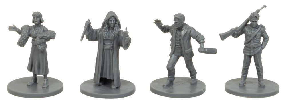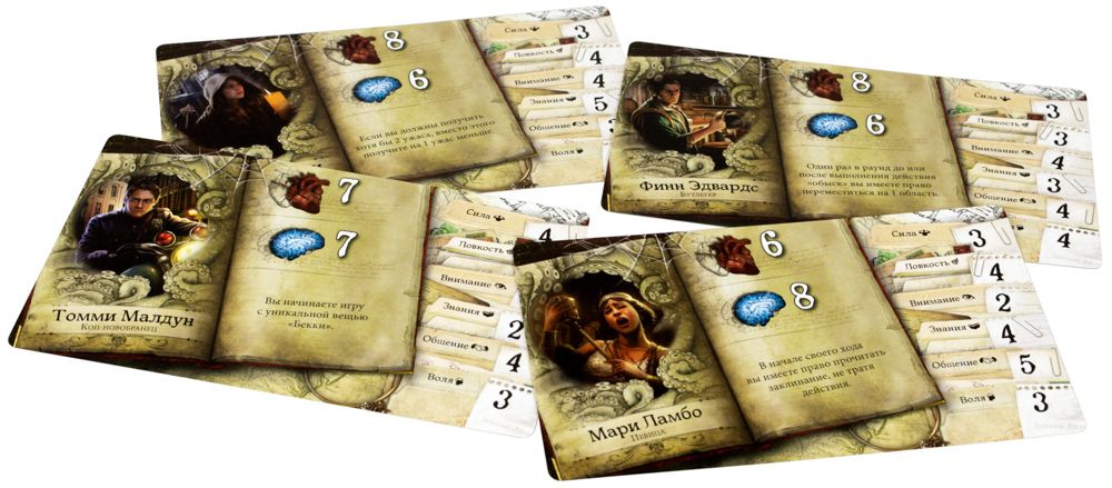 - 4 фигурки и карты сыщиков;