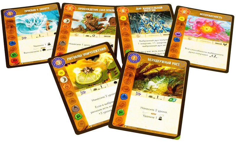 - каждый из 8 духов природы обладает уникальными свойствами, присущими его природной силе, благодаря чему каждый игрок действует по своим игровым правилам;