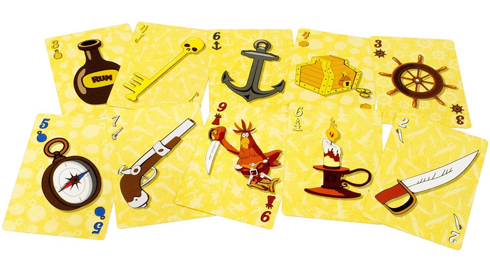 Основным компонентом игры являются карты с изображенными на них трофеями. Всего в колоде 60 карт с 10 видами трофеев (по 6 каждого вида). Карты с трофеями лежат в центре стола стопкой рубашкой вверх. Игроки делают ходы по очереди, открывая в свой ход верхние карты стопки и выкладывает их в отрытую рядом. Игрок вправе открыть любое количество карт, но если рисунок на картах повторится, то все открытые карты отправляются в сброс. Если же игрок решает остановится, и в ряду нет повторяющихся карт, он забирает трофеи себе. Очки на картах будут формировать его призовой фонд на конец партии. Это базовая механика игры «Остров сокровищ».