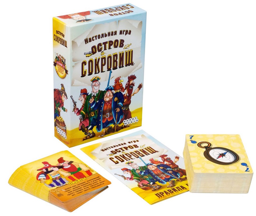 «Остров сокровищ» - веселая и динамичная карточная настольная игра, оформленная по мотивам одноименного советского мультфильма, имевшего огромную популярность в конце 80-х, начале 90-х годов прошлого века.