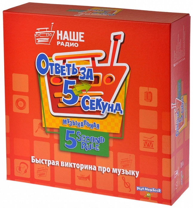 Настольная игра «Ответь за 5 секунд Музыкальная» - это версия всемирно известной викторины «5 Second Rule», в которой подобраны вопросы так или иначе связанные с музыкой. Эта веселая игра придется по вкусу меломанам, музыкальным талантам и их поклонникам, и всем всем всем, кто просто любит тусить и слушать современную музыку.