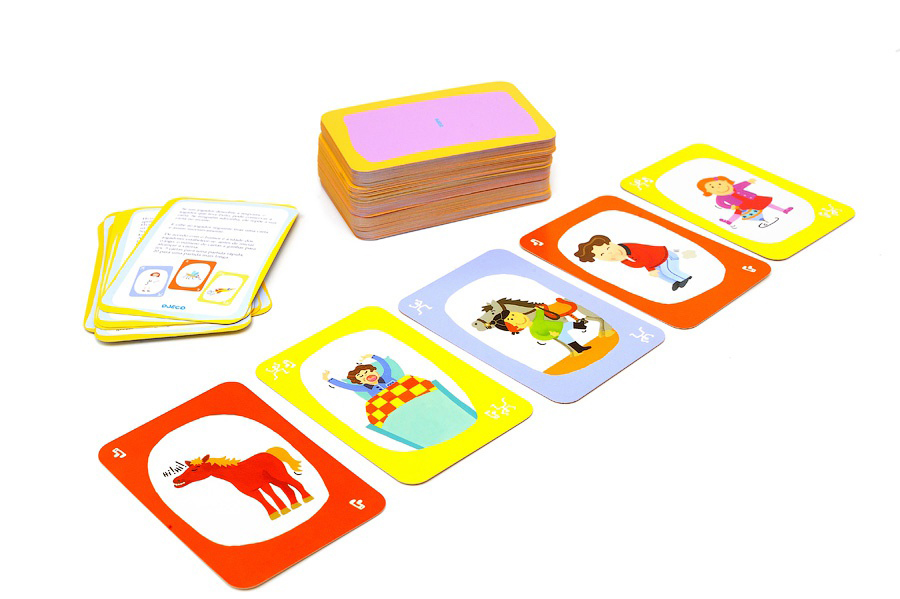 В комплект игра «Пантомима» входит 120 карт, разделенный на 3 цвета. На каждой карте есть рисунок, значение которого должен передать игрок другим участникам с помощью:
