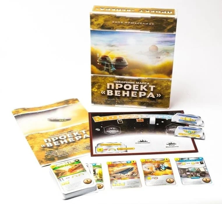 «Покорение Марса: Проект Венера» – это дополнение к одноименной игре, которое добавляет новую шкалу, за которой должны следить участники – шкала Венеры. Кроме этого, в коробке найдутся новые карты проектов, корпорации и ресурсы.