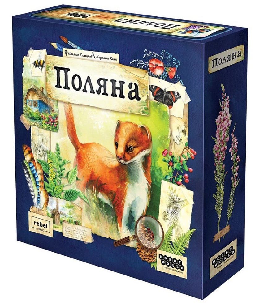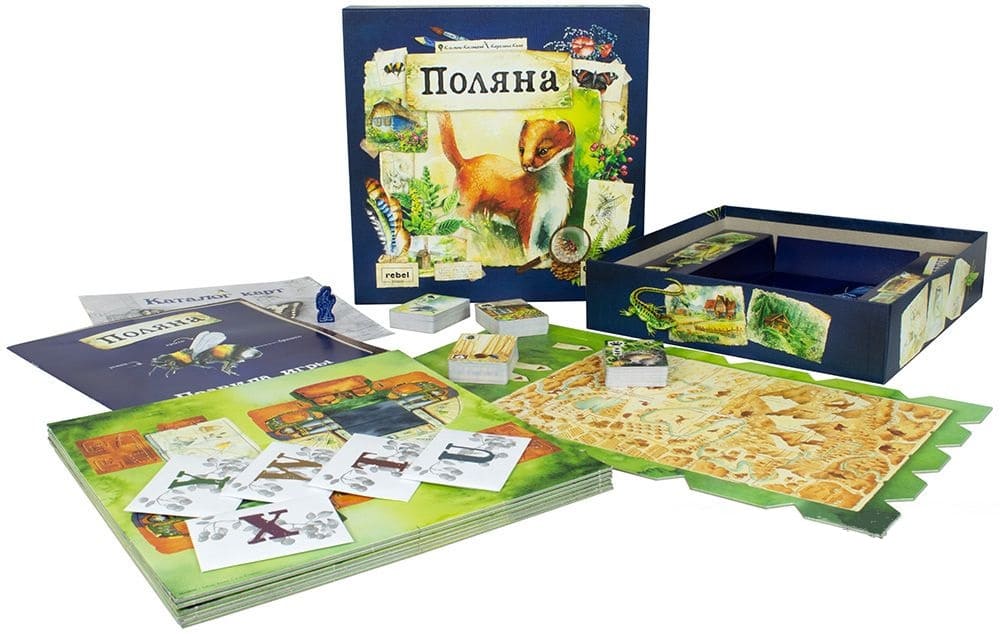 «Поляна» - средняя по сложности настольная игра, в которой участники выступают в роли натуралистов, пытаясь заслужить звание самого опытного исследователя. Отдельно хочется отменить оформление игры, ее более чем две сотни карт были нарисованы вручную акварельными красками, а затем оцифрованы.