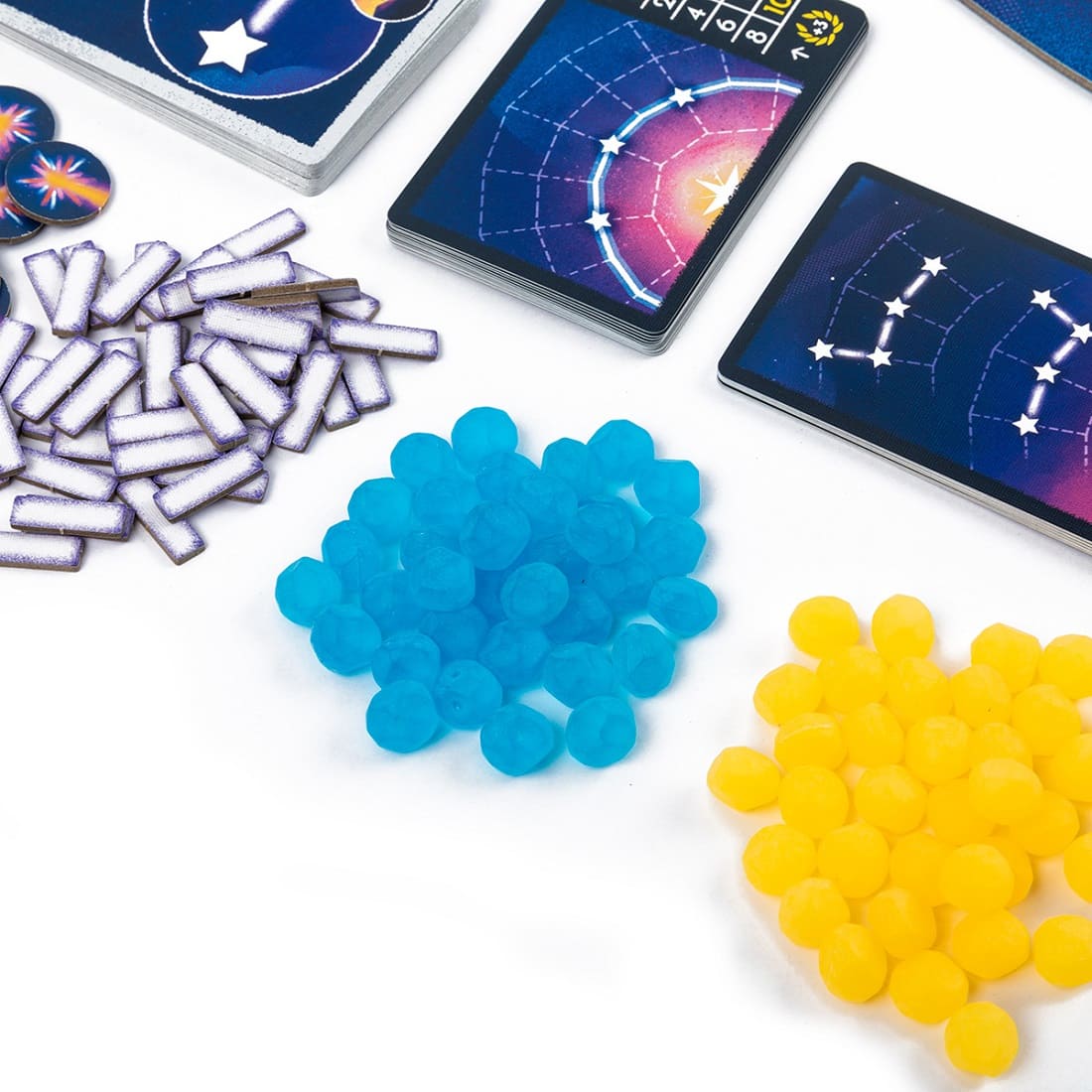 - Созвездия: формируются путем соединения двух и более звезд линиями; в конце игры они приносят основные победные очки.