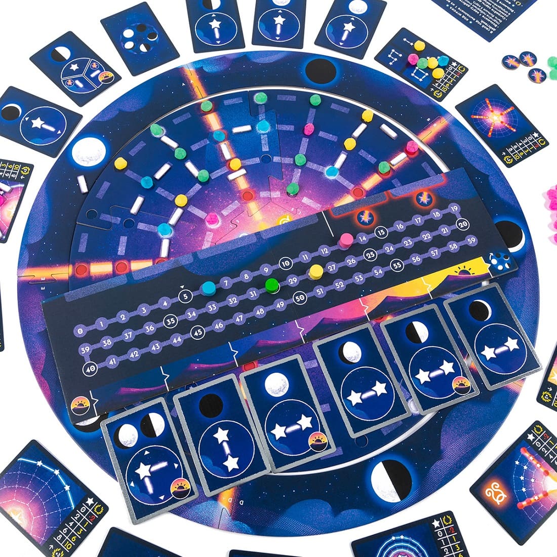 - Динамика фаз Луны: рамка с фазами Луны вращается вокруг поля, меняя доступные для игроков области неба каждый раунд.