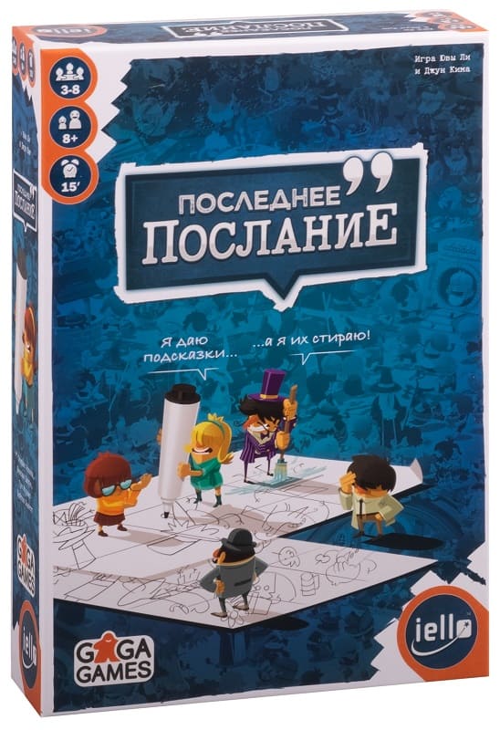 «Последнее послание» - полукооперативная детективная настольная игра, в которой команде детективов и потерпевшего потребуется раскрыть преступника найдя его среди огромной толпы, изображённой на детализированных картинках места преступления.