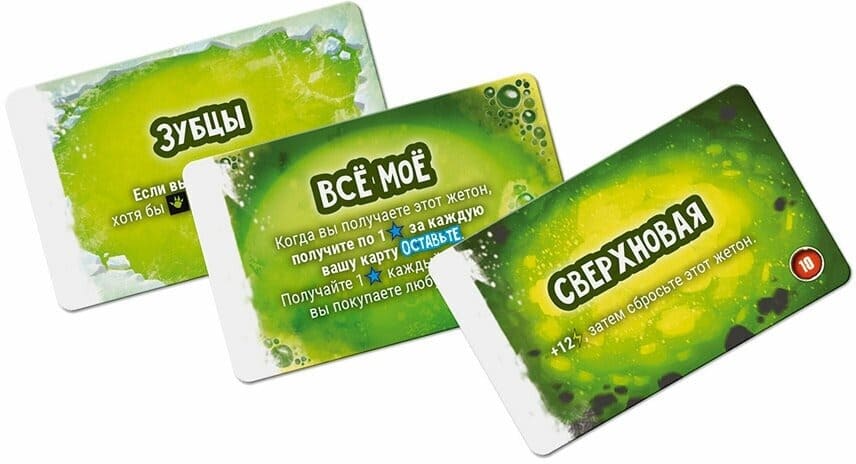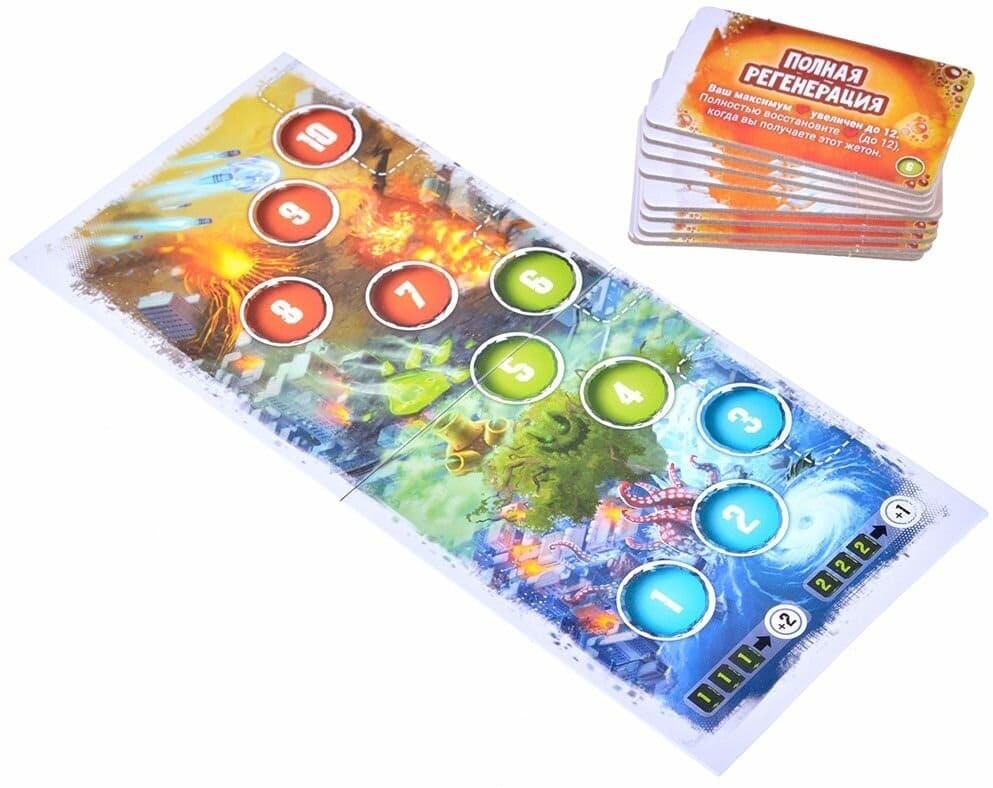 Главное нововведение дополнения «Повелитель Токио: Еще больше ярости!» - шкала ярости, на которой измеряется ее уровень, а увеличивают ее удачные броски кубиков. При достижении третьего, шестого и десятого уровня, игроки могут выбрать себе жетон ярости и получить полезный эффект, с помощью которого можно легко обойти соперников. Представьте, некоторые из них позволяют восстанавливать силы в начале хода, получать дополнительный кубик или воровать бонусную энергию у соперников.