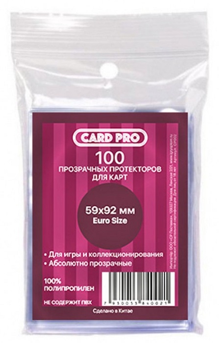 Протекторы Card-Pro изготовлены из тонкого прозрачного полипропилена. Они обеспечат удобную игру, и защитят карты от пыли, жировых отложений пальцев, заломов и пр.