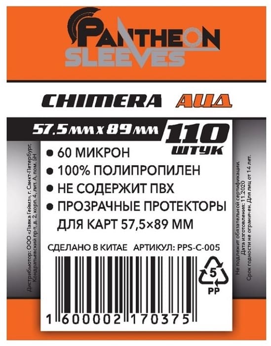 Протекторы Pantheon Sleeves изготовлены из тонкого прозрачного полипропилена 60 микрон. Они обеспечат удобную игру, и защитят карты от пыли, жировых отложений пальцев, заломов и пр.