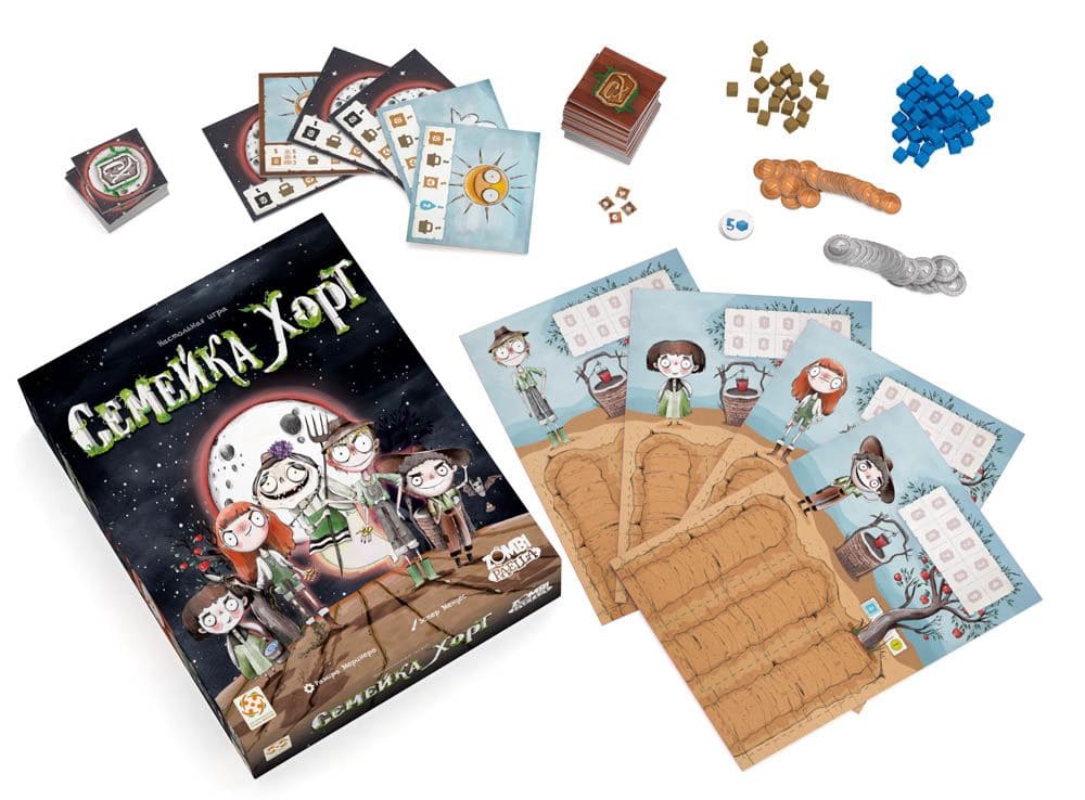 «Семейка Хорт» – это экономическая настольная игра, в которой участникам предстоит сажать семена растений, поливать, ухаживать за ними и продавать их, получая монеты и победные очки. Рассчитана она на компанию от 2 до 4 человек возрастом старше 8 лет.
