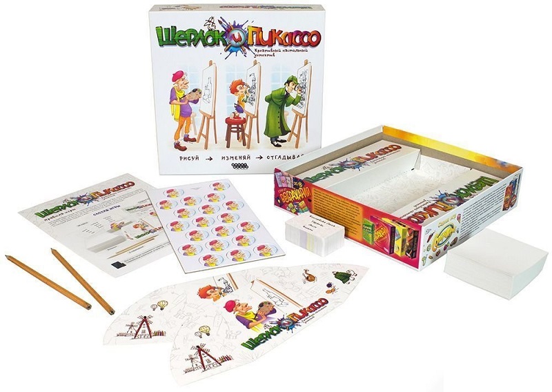 "Шерлок и Пикассо" – это креативная игра для вечеринок. В каждом раунде игроки делятся на 3 команды. Один участник становится художником, которому предстоит рисовать различные предметы, другой – сорванцом, который будет эти рисунки переделывать, а остальные – детективами, пытающимися угадывать, что было изображено на оригинале. Каждый раунд роли меняются, поэтому вы сможете проявить себя с разных сторон. Победа в "Шерлоке и Пикассо" достаётся самым креативным и самым догадливым!