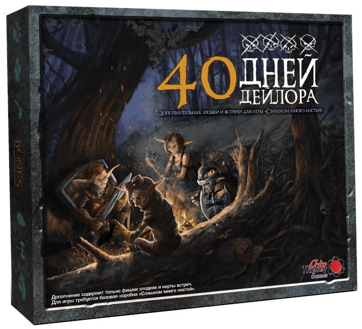 «40 дней Дейлора» - это дополнение к настольной игре «Слишком Много Костей», которое привносит в игру 15 новых злодеев и 40 новых встреч.