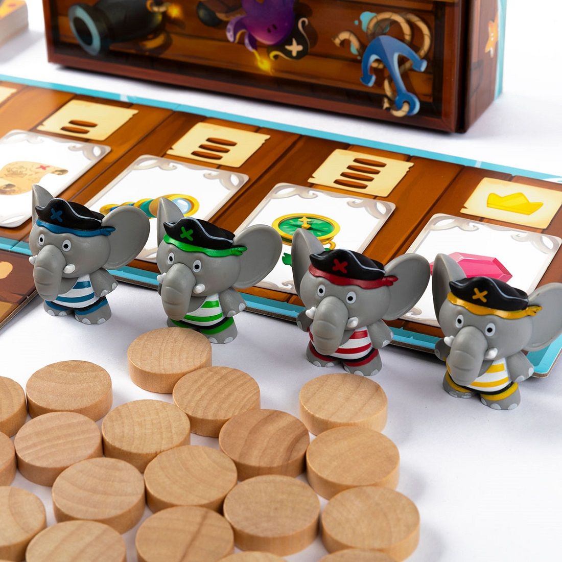 «Слоны-пираты» - интерактивная настольная игра на баланс между жадностью и удачей. Она очень азартна и весела, имеет великолепные компоненты и красивое оформление, а увлекательный игровой процесс способен объединить за игровым столом и детей, и взрослых.