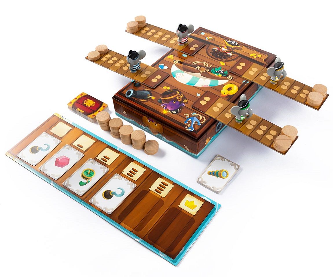 Каждая добыча обернется головной болью для конкурентов — придется нагрузить их доску тяжелыми сундуками, способными отправить моряков за борт. Кто свалился в море, покидает состязание навсегда.