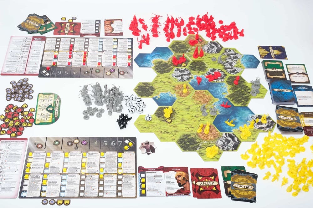 - 164 фигурки отрядов (16 поселенцев, 84 пехоты, 20 кораблей, 20 боевых слонов, 20 конниц, 4 лидера);