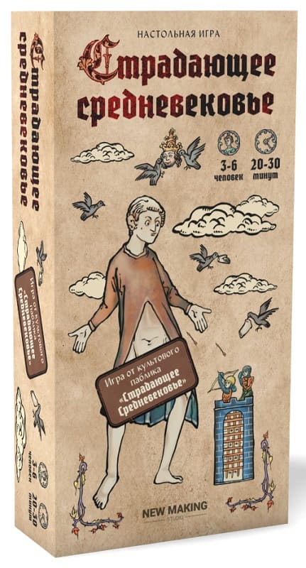«Страдающее Средневековье» — это несложная карточная игра для вечеринок, рассчитанная на компанию от трех до шести игроков. Она раскрывает истинную жизнь в средних веках, а для победы в ней потребуется логика, внимательность и коварство по отношению к соперникам.