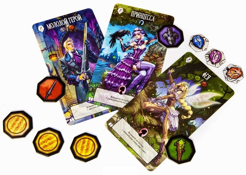 - Разыграть любую карту с руки, вписывая ее в уже выложенные на стол карты. Символы карты определяют ее место, применяемые в ход эффекты и количество получаемых победных очков.