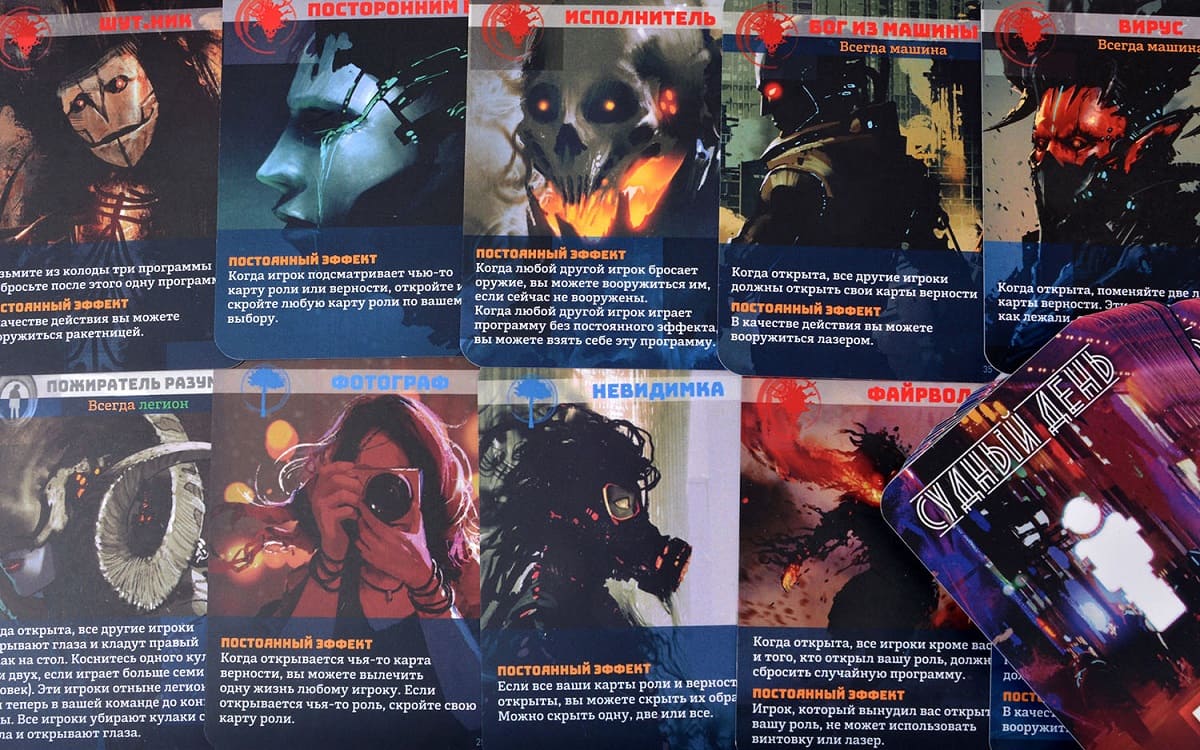 «Судный день» - салонная ролевая игра, в которой участникам предстоит примерить на себя роли восставших машин, людей и изгоев, и сразиться друг с другом. В игре могут принять участие от 4 до 16 человек старше 16 лет. Ну что? Готовы отправиться в темное будущее?
