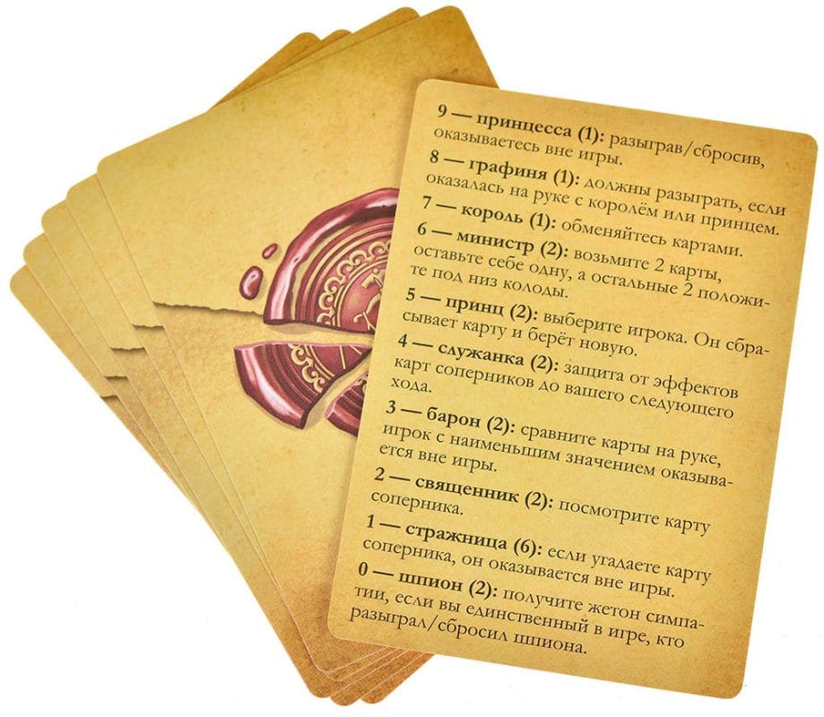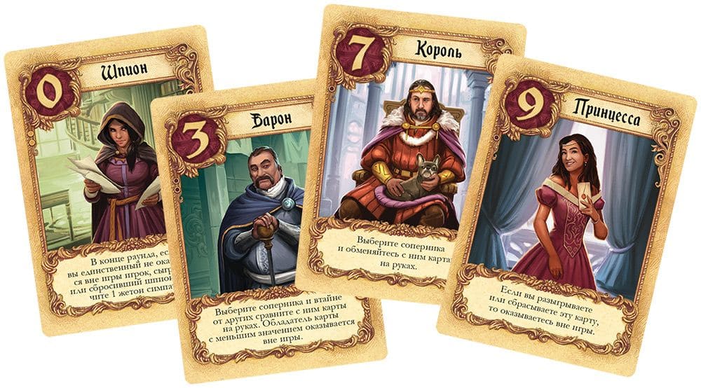 Раунд заканчивается, когда разыграна вся колода или пока не останется единственный неустрашимый претендент. Победитель раунда получает заветный жетон симпатии – шаг к сердцу Принцессы. Для окончательной победы, нужно собрать определённое количество жетонов: