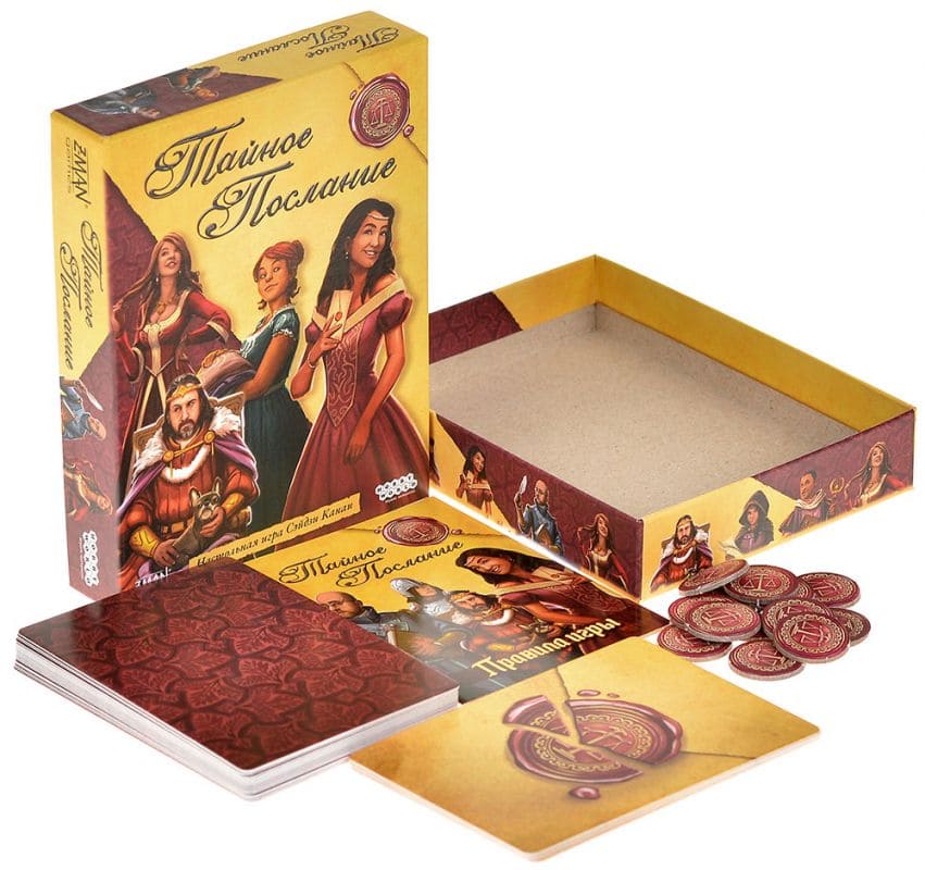«Тайное послание» — быстрая карточная игра, сочетающая элементы стратегии, риска и дедукции. Основная задача игроков заключается в доставке письма-признания прямо в руки красавицы-принцессы раньше остальных конкурентов. Используя уникальные возможности героев двора, вам предстоит манипулировать судьбой противников и получать максимум признательности девушки.