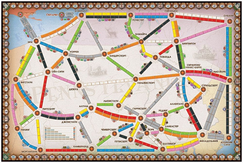 Штат Пенсильвания – знаменательное место в истории железных дорог, где зарождалась сталелитейная промышленность США. Проходя перегоны, вы будете приобретать акции железнодорожных сетей и к концу игры получите дополнительные очки за контрольный пакет акций той или иной компании. Так что же вы медлите? По вагонам!