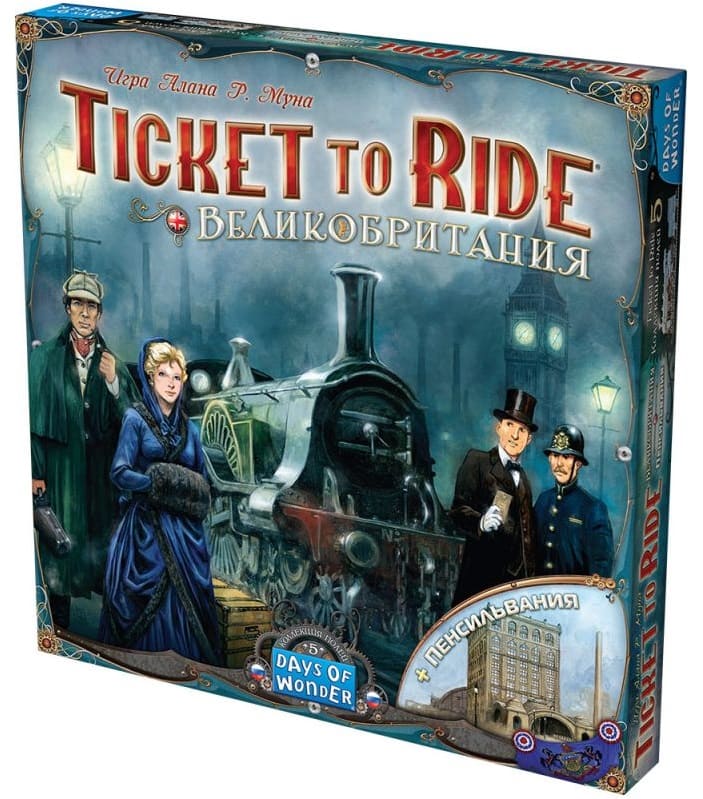 «Ticket to Ride: Великобритания и Пенсильвания» – пятое большое дополнение к одноименной игре, которое включает новое двустороннее игровое поле с картами Великобритании и Пенсильвании. Для использования дополнения необходимо иметь базовые версии игры «Билет на поезд: Европа» или «Билет на поезд: Америка».