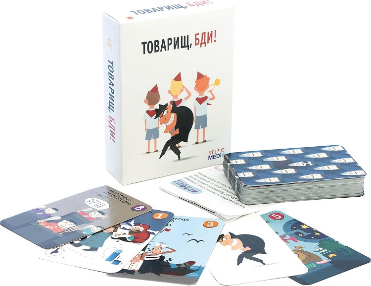«Товарищь, бди!» - это аналог настольной игры «Страна снов», в которой карты сновидений заменены на карты с необычными профессиями, а карта «Ловца снов» на карту «Шпион». А профессии в этой игре встречаются очень необычные. Чего только стоит Переворачиватель пингвинов из Антарктиды или Автор текстов для печенек удачи из Китая. Игра рассчитана на аудиторию в возрасте от 10 лет, разовьет воображение, образность мышления и красноречие.