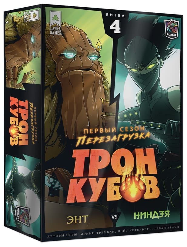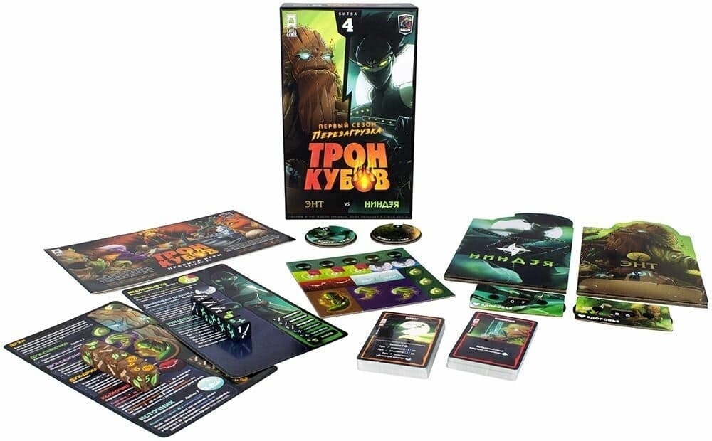 «Трон кубов. Первый сезон: Энт vs Ниндзя» – одна из дуэльных игр серии «Трон кубов», в которых участники сражаются друг против друга, выбрав определенного героя. Серия содержит 4 игры каждая коробка которой содержит двух уникальных персонажей. Игроки могут устраивать единоборства между персонажами из разных коробок, а в дополнение к этому правила предусматривают разные режимы для компаний из более 2 игроков – «Царь горы» и командный..