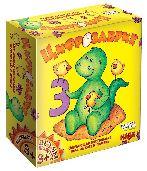 Настольная игра «Цифрозаврик» предлагает в игровой форме познакомить малыша в возрасте от 3 лет с навыками устного счета и цифрами. Ребенок усвоит такое понятие как количество, научится считать до 7 и познакомится с цифрами.