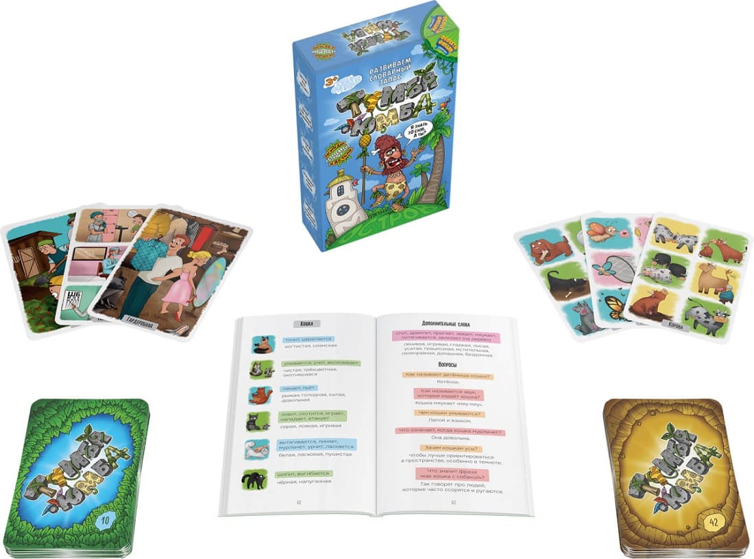 «Тумба-Юмба» - дидактическая настольная игра на расширение словарного запаса у детей в возрасте от 3 лет и старше, который позволяет им более четко выражать свои мысли и познавать окружающий мир. Игра направлена не только на пополнение активного запаса слов, но и пассивного, а среди слов не только существительные, но и глаголы, прилагательные и причастия.