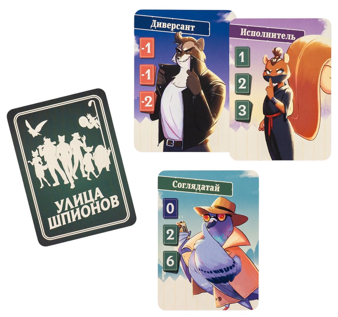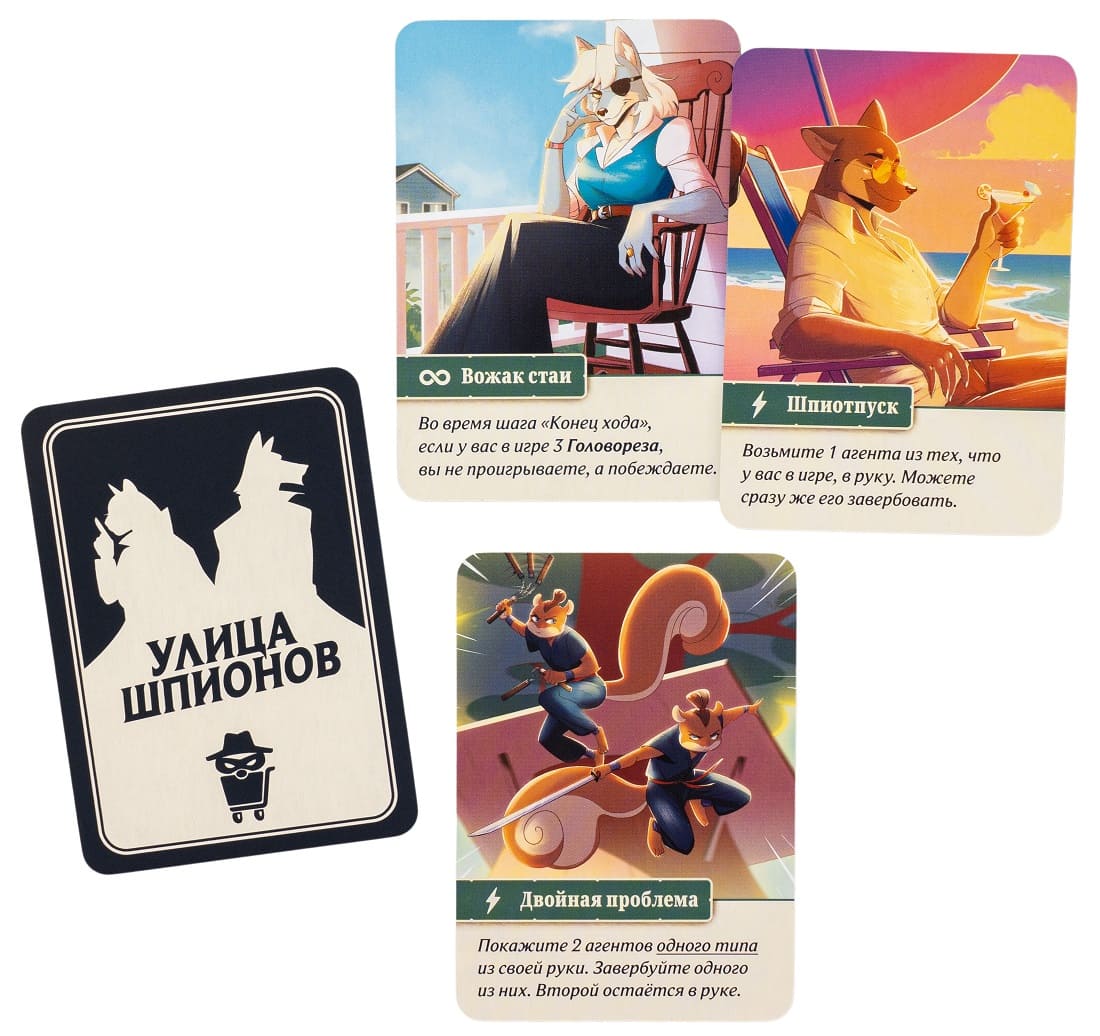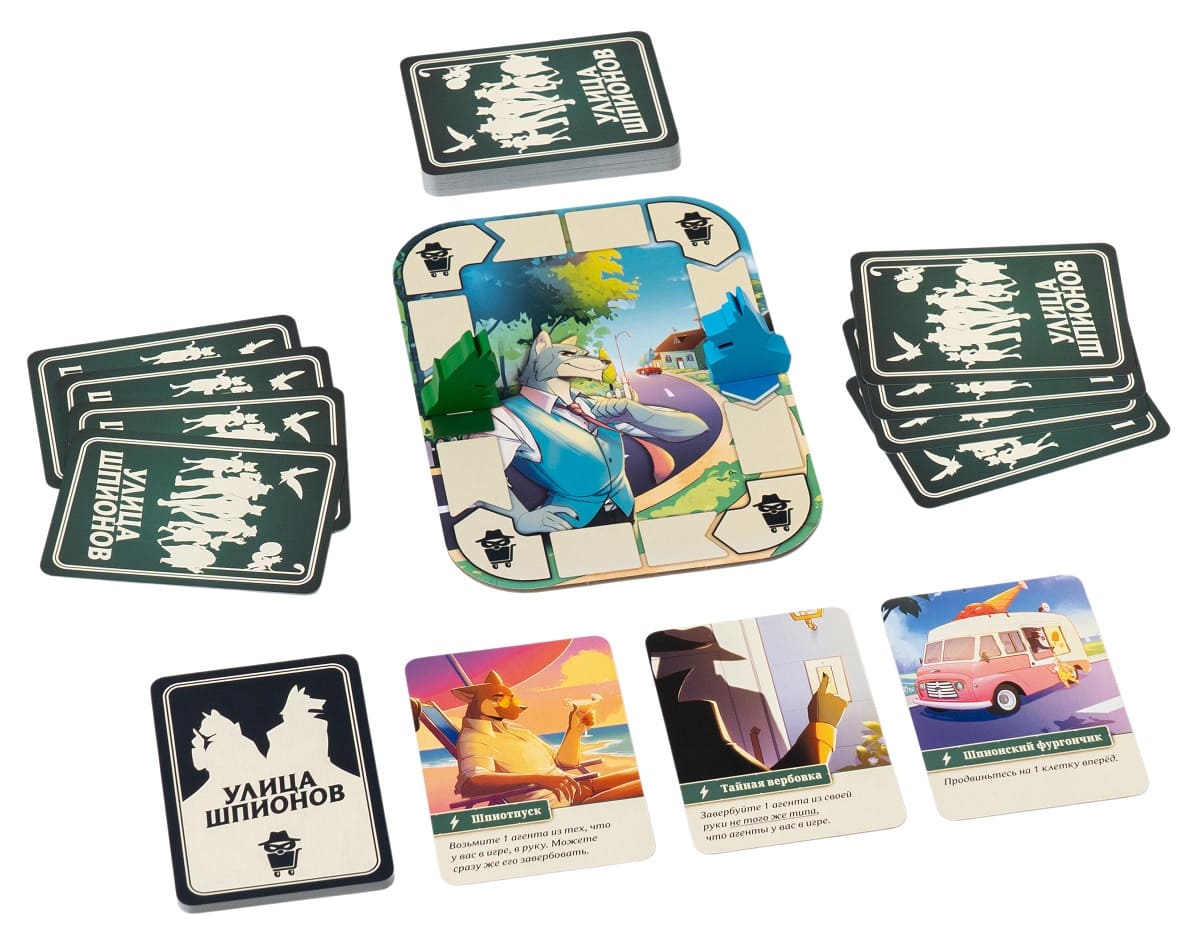 «Улица шпионов» — карточная игра, сочетающая в себе блеф, сбор комбинаций и гонку по раскрытию личности противника. В красочном антропоморфном мире игры отставные шпионы, живущие в пригороде, развлекаются тем, что раскрывают секреты друг друга. Разыгрывайте карты, используйте их свойства, собирайте мощные комбинации и постарайтесь узнать личности ваших соперников. Лёгкое и азартное противостояние с неожиданной стратегической глубиной.