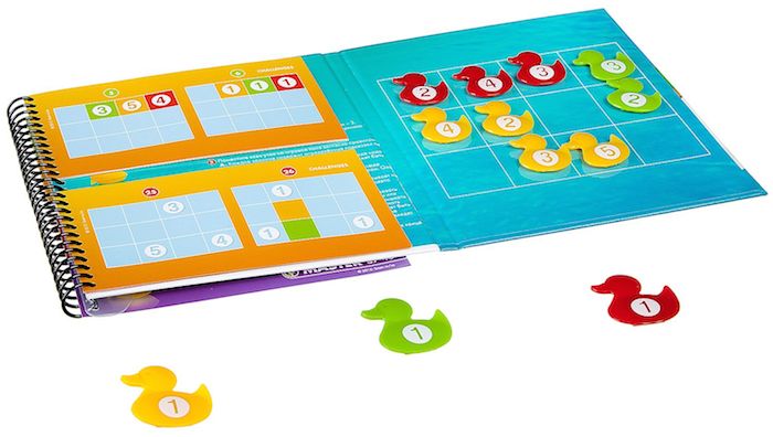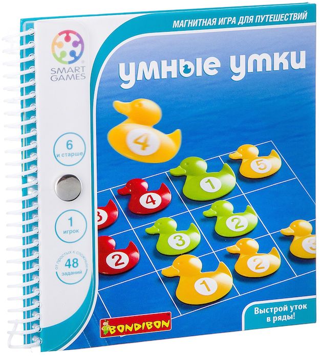 В магнитной игре-головоломке «Умные утки» от Bondibon поселились три утиные семьи. Каждая семья различна по величине и окрашена в свой цвет: желтых – 5, красных – 4 и желтых – 3. Утки любят порядок и ходят всегда гуськом, выстраиваясь по росту. Вот и в игре, чтобы не запутаться все уточки пронумерованы: мамы (самые большие утки) имеют номер 1, а дети все остальные порядковые номера в семье.