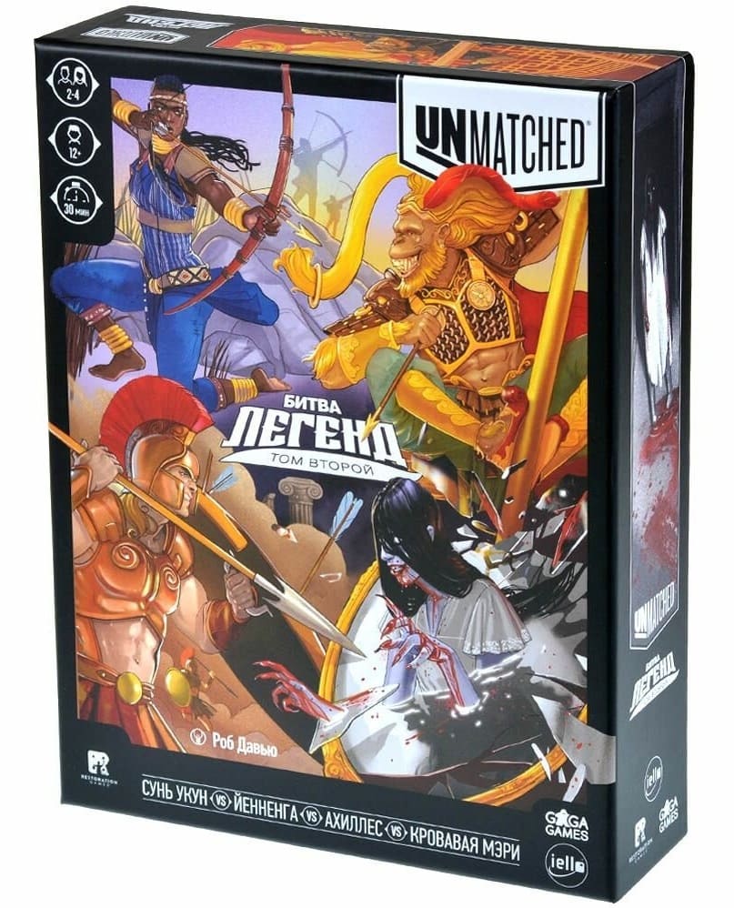 «Unmatched» - это серия игр-скирмишей, в которой в стычки (по-английски skirmish – стычка) вступают самые различные персонажи, выполненные в форме миниатюр, управляемыми с помощью индивидуальных ассиметричных колод карт. «Битва легенд» - это первая игра серии, локализованная для российского рынка издательством GaGa Games.
