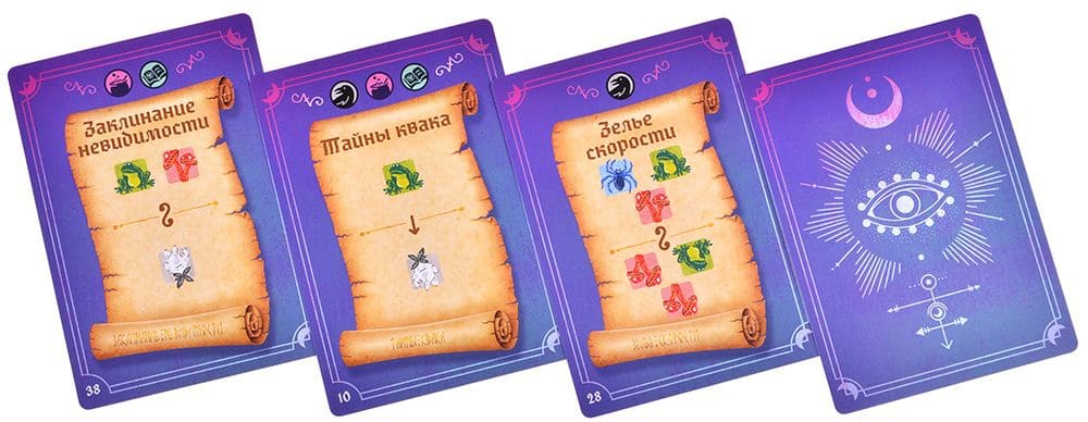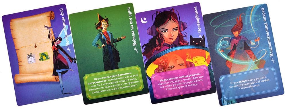 В игре также есть карты аркан и способности ведьм, которые позволят игрокам совершать некоторые действия в обход правилам. Например, взять и положить в котел любой ингредиент с рынка или выбрать ингредиент, который в текущем раунде будет для игрока в бесконечном количестве.