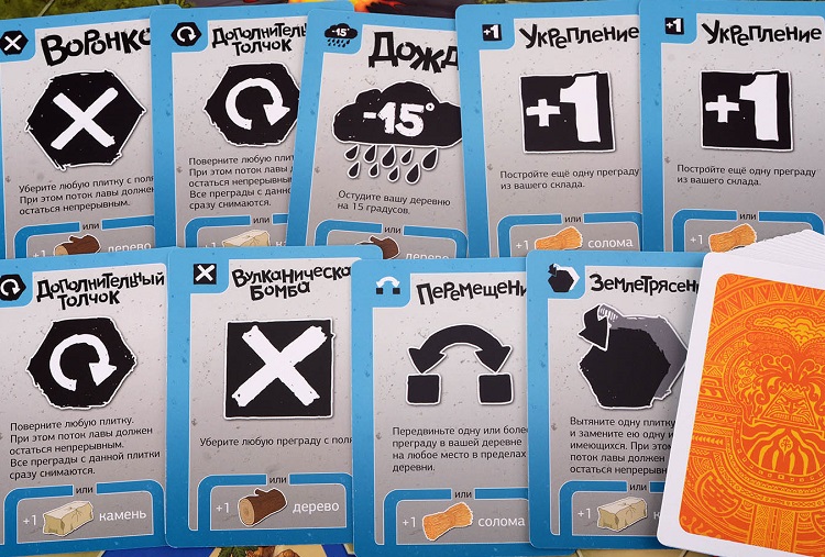 - может установить ограждение препятствуя прохождению лавы, разыграв успешность его установки игральными кубиками;