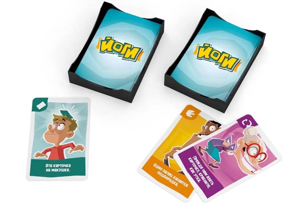 Все очень просто! Перемешайте карты и разделите их на две стопки. В свой ход игрок вытягивает карту из одной стопки и следует указанию на ней до конца партии. Зеленые карты игрок кладет перед собой, а красные держит на разных частях тела. По мере прохождения партии игрокам становится сложнее выполнять задания, и они начнут выбывать из игры. Последний игрок, продолжающий выполнять задания, становится победителем игры «Йоги».Помимо этого, правила «Йогов» имеют усложненный и командный режим игры.